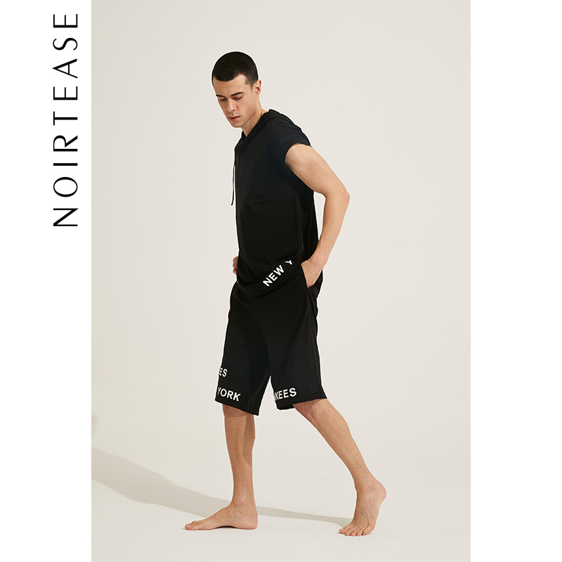 睡衣两件套连帽休闲家居服夏季 短袖 纯棉短裤 NoirTease奈黎诗男士