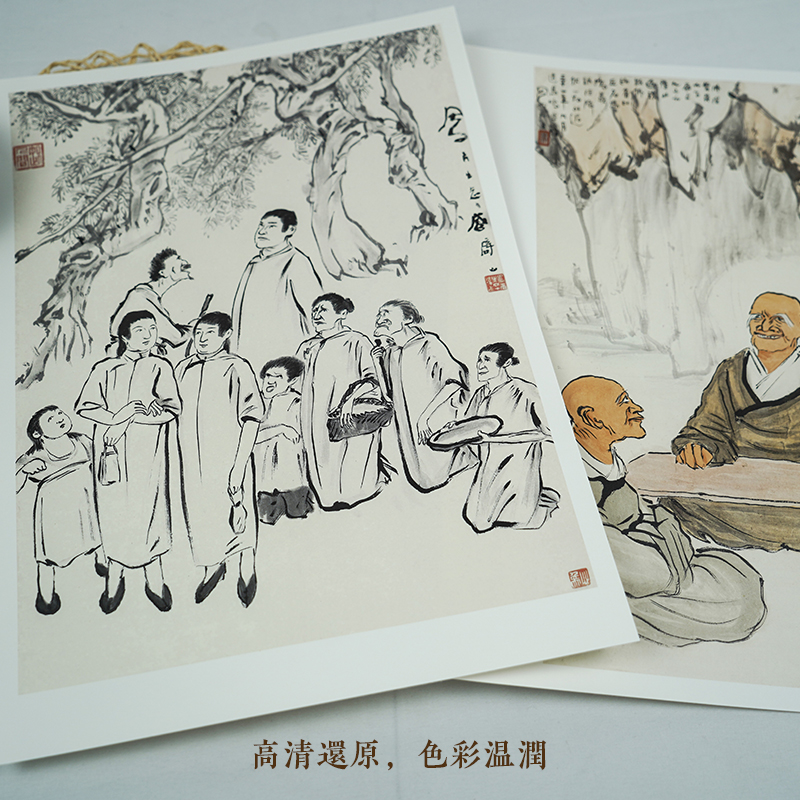 现代中国绘画白描写意工笔人物临摹美术艺术作品集 吕凤子人物画辑 详细释文大8开 四色印刷 湖山画丛系列 内页二十五帧烫印银字