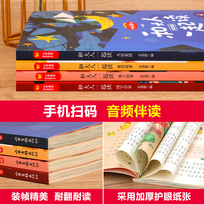 正版 阅听读小学生课外书必读书籍 一年级上册快乐读书吧必读和大人一起读全套四册儿歌童谣国学启蒙童话故事寓言故事彩图注音扫码