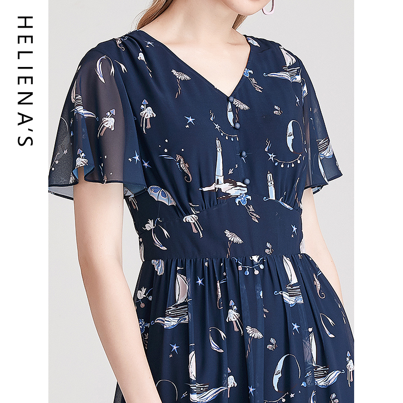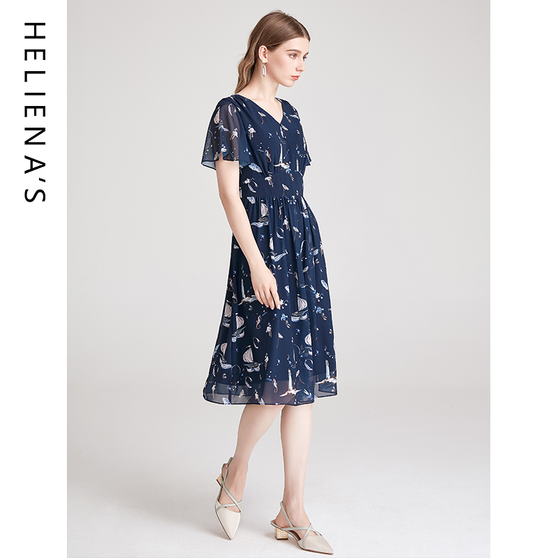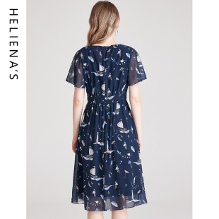 复古浪漫收腰不规则荷叶边雪纺连衣裙 新款 BANANA CICI2025年秋季