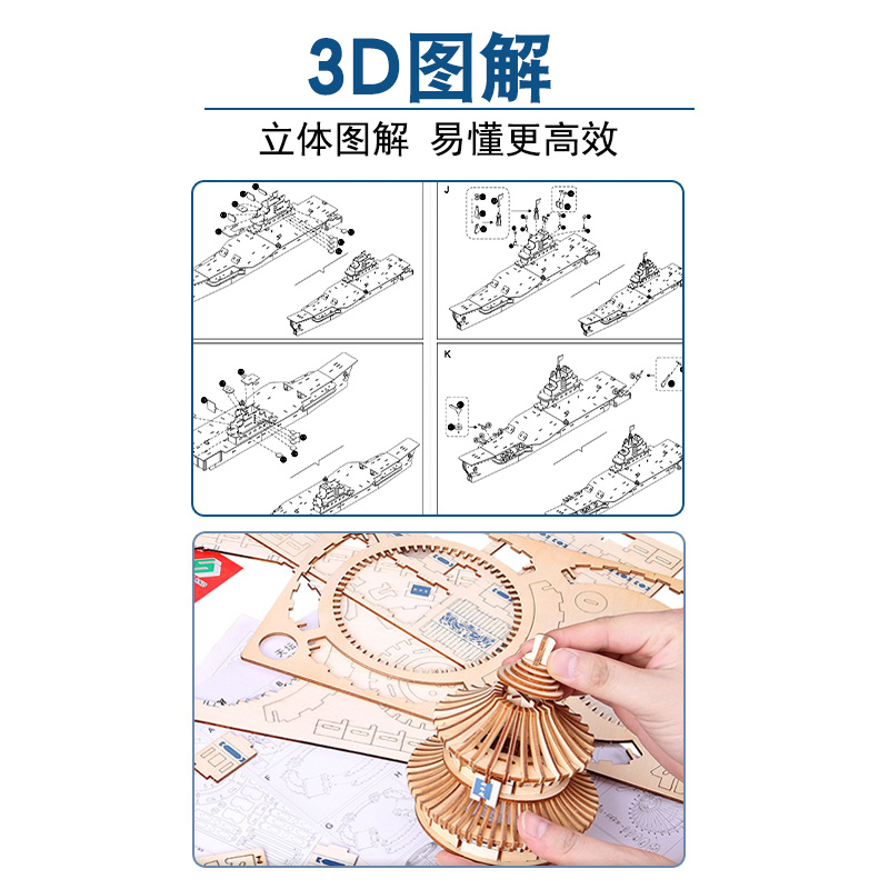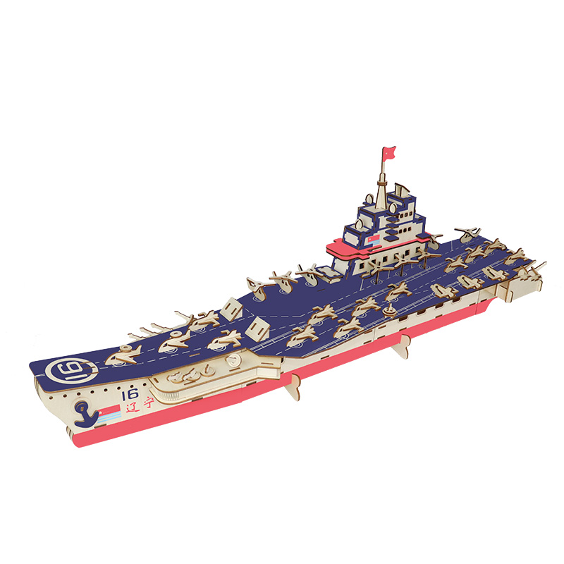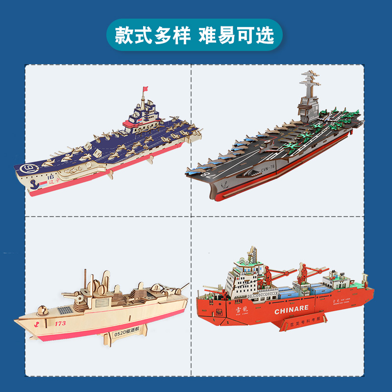 积木质航母模型巡洋战舰军事系列拼装 3d立体拼图高难度大型船玩具