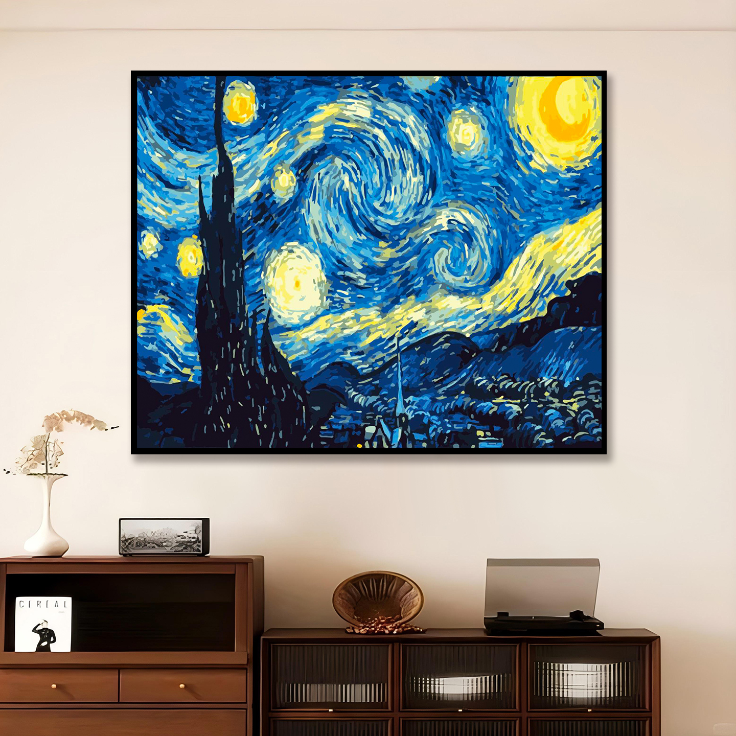 数字油画梵高星空diy手绘填色数字画世界名画高级感丙烯画装 饰画