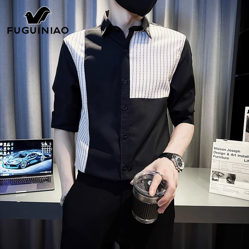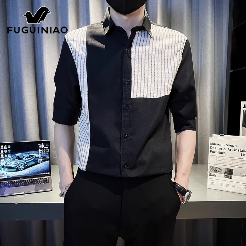 男士 休闲寸衫 上衣2025新款 富贵鸟夏季 衬衣外套男装 衬衫 短袖 五分袖