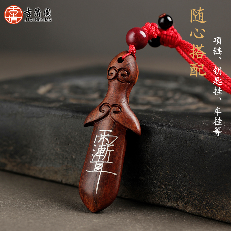 红心桃木剑紫薇宝剑婴儿童男女款 成人随身朱砂钥匙扣护身符小挂件