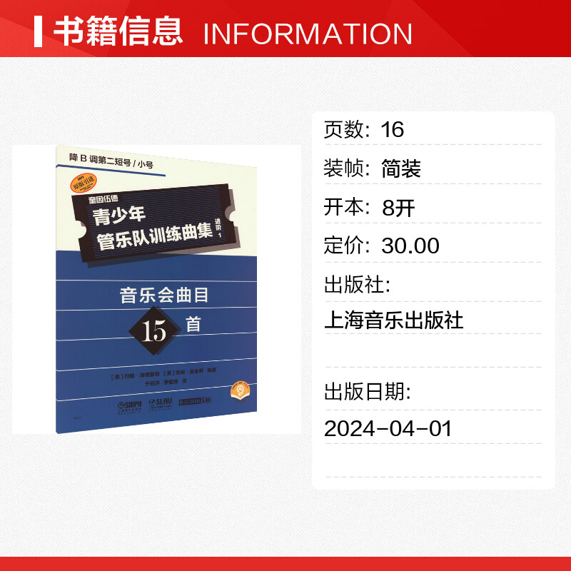 降B调第二短号小号 扫码 图书书籍畅销书上海音乐出版 进阶 社 新华文轩书店旗舰店官网正版 音乐艺术 青少年管乐队训练曲集 音频版