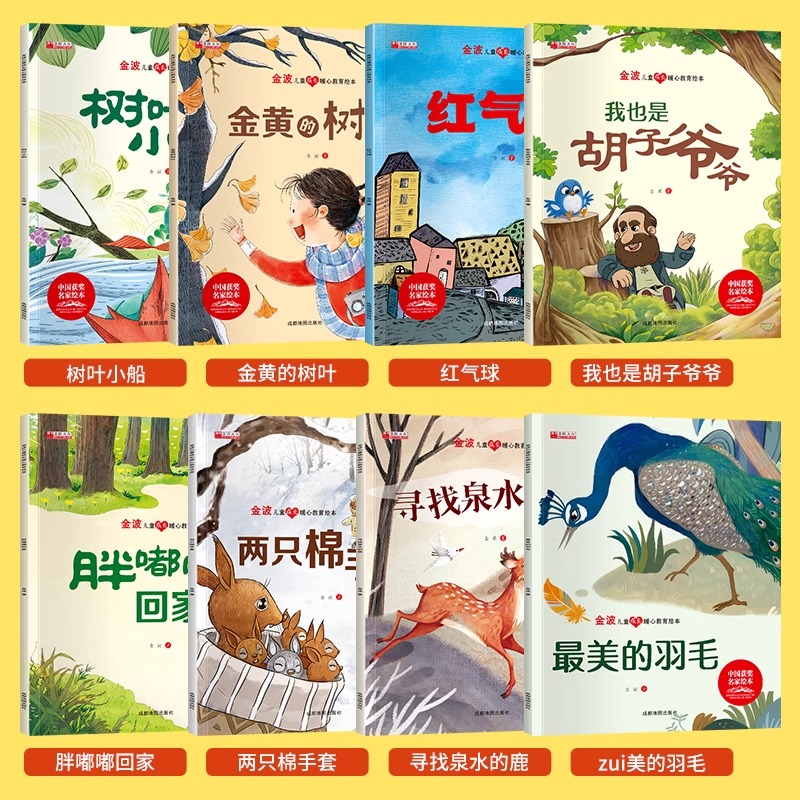 6岁以上 儿童故事书小学1注音版 当当网金波儿童成长暖心教育绘本全8册树叶小船名家获奖美文书籍一年级阅读课外书必读6 8岁带拼音