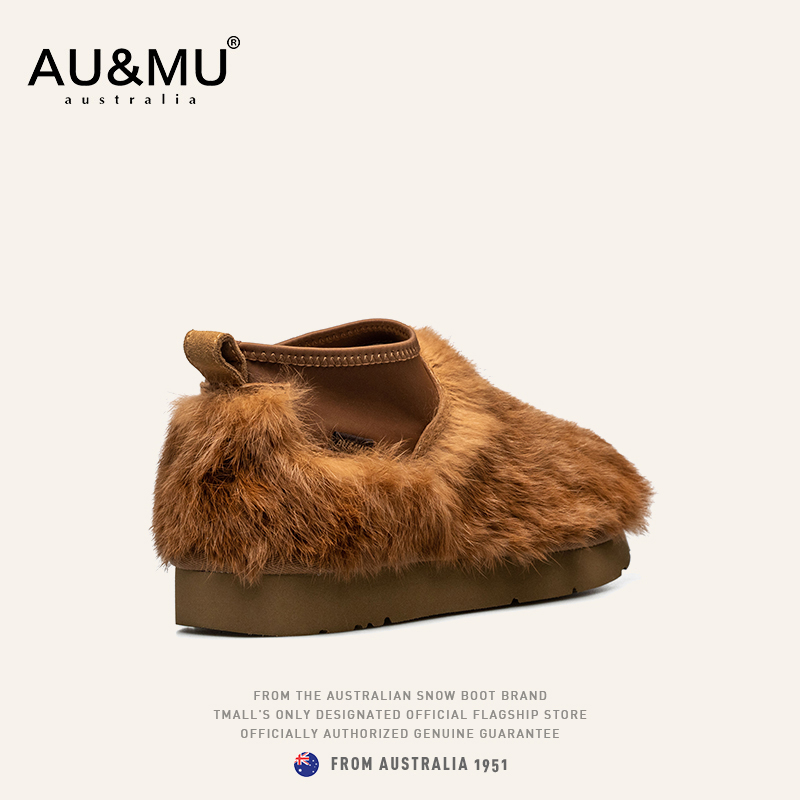 低帮雪地靴女皮毛一体 兔毛加绒棉鞋 AUMU2025秋冬新品 甜美轻奢时尚