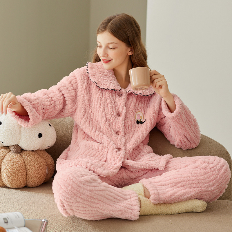 可外穿家居服套装 芬腾珊瑚绒睡衣女秋冬季 保暖加厚加绒法兰绒大码