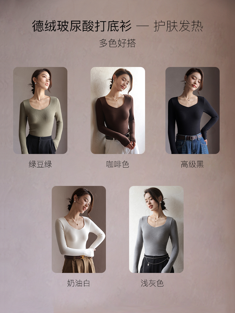 猫人德绒保暖内衣女带胸垫加绒加厚发热打底衫 上衣 秋衣无痕秋冬季