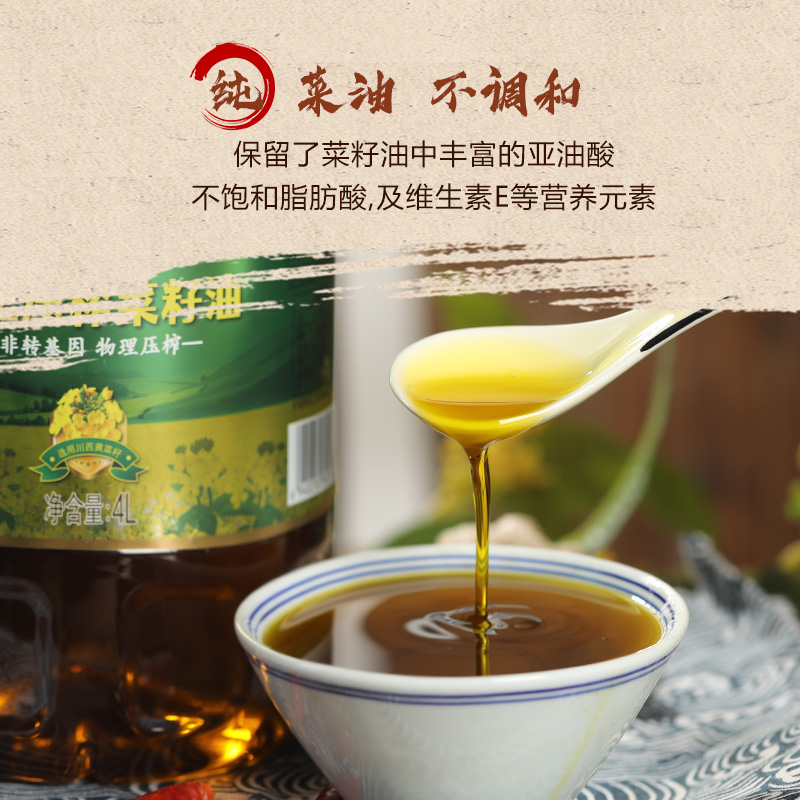 家用炒菜浓香食用油 爆款 菜子王纯正压榨非转基因菜籽油4L 2桶装