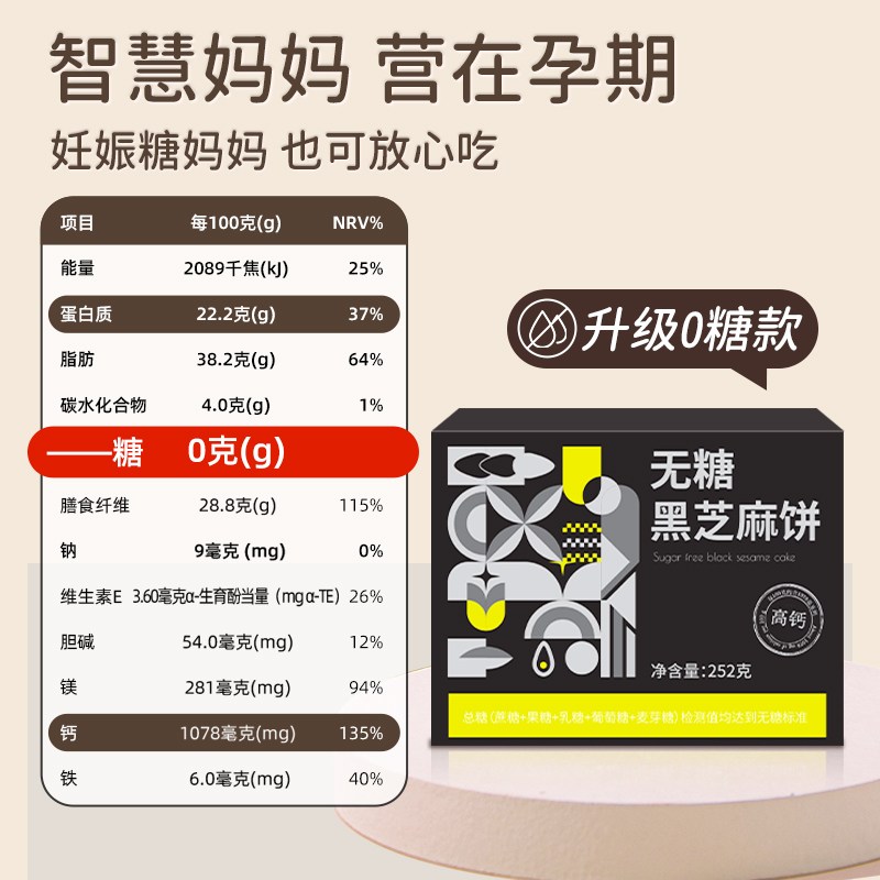 黑芝麻饼孕妇零食小吃营养孕期无糖无蔗糖添加高钙可以吃 饱腹感