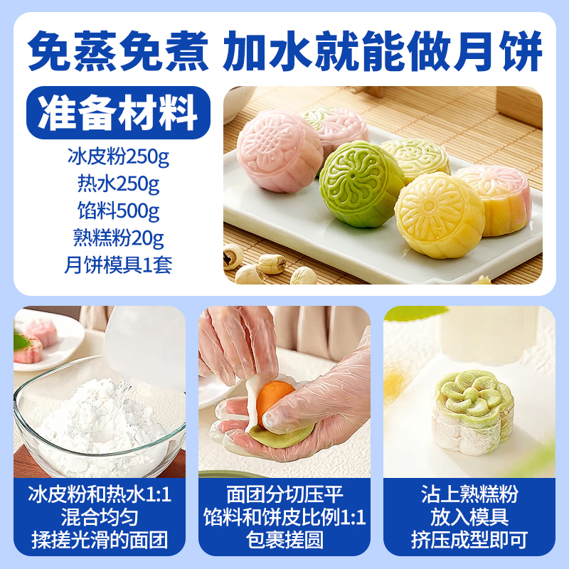 冰皮月饼自制材料预拌粉diy免蒸制作全套装 做团建套餐手工专用粉