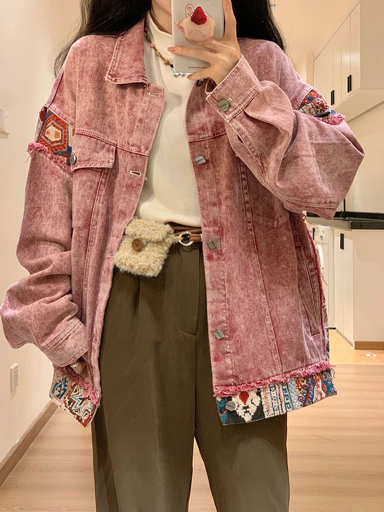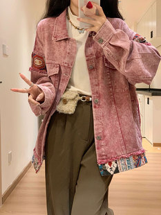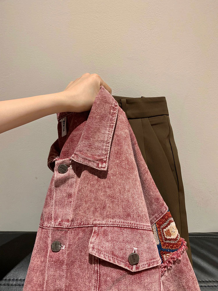 复古港风chic重工拼接牛仔外套女春秋宽松大码 夹克上衣 高级感工装