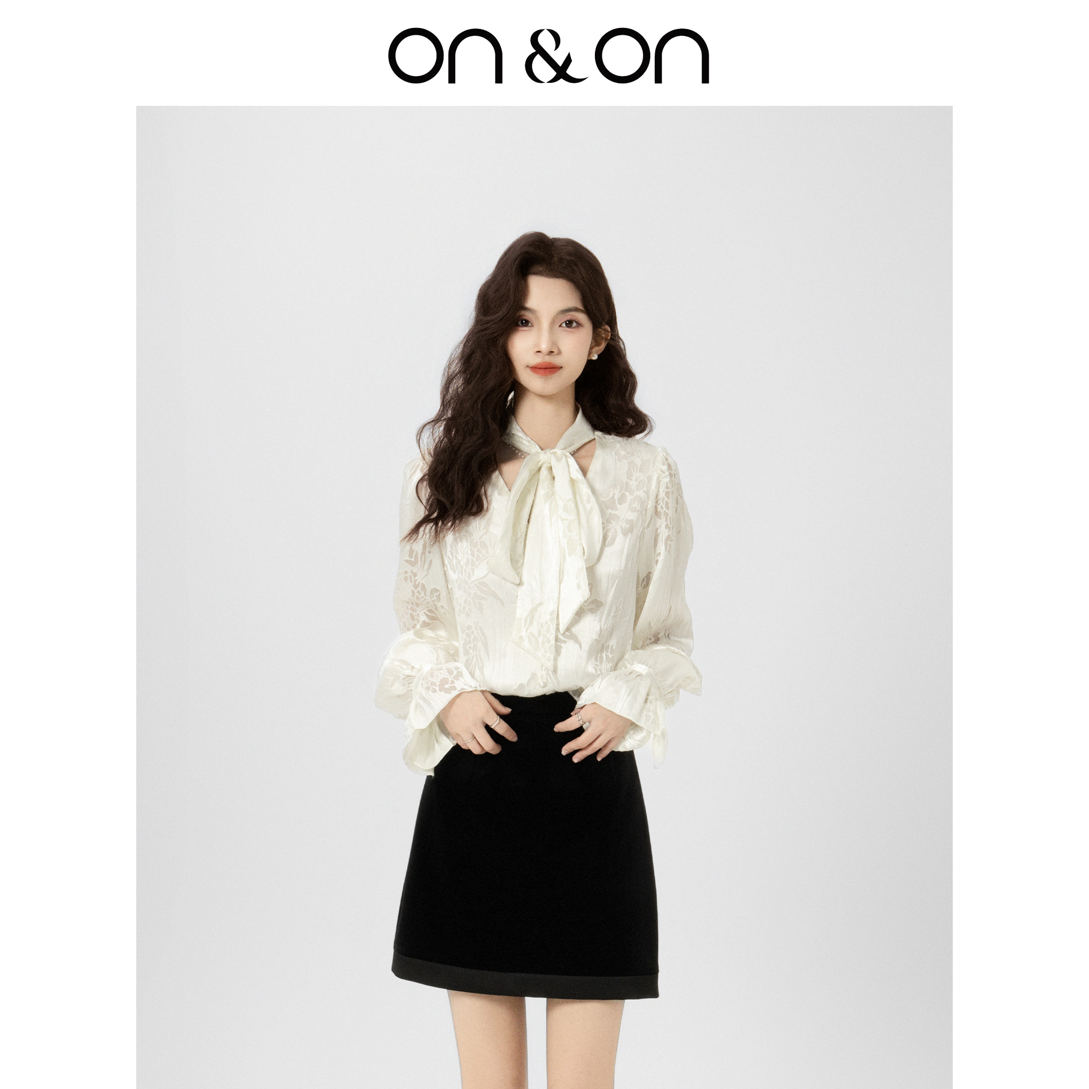 法式 ON&ON 25秋季 流光复古风 轻奢气质飘带蝴蝶结衬衣 安乃安