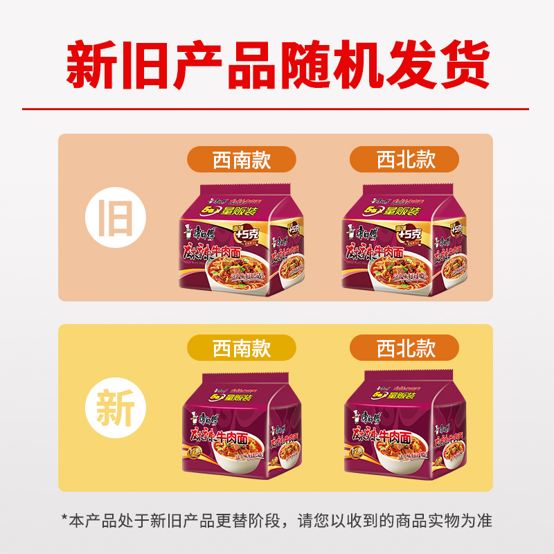 泡面速食面即食面夜宵 5袋装 康师傅方便面经典 袋麻辣牛肉面106g