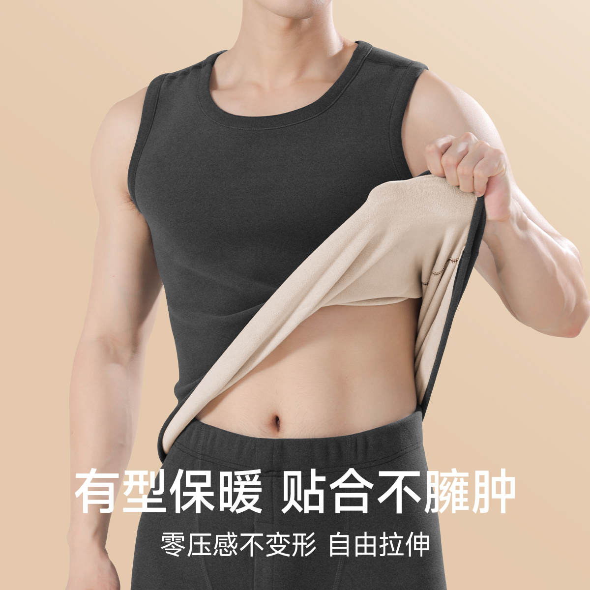 芬腾保暖背心男款 内搭上衣爸爸中老年加绒加厚羊羔绒打底马甲 冬季