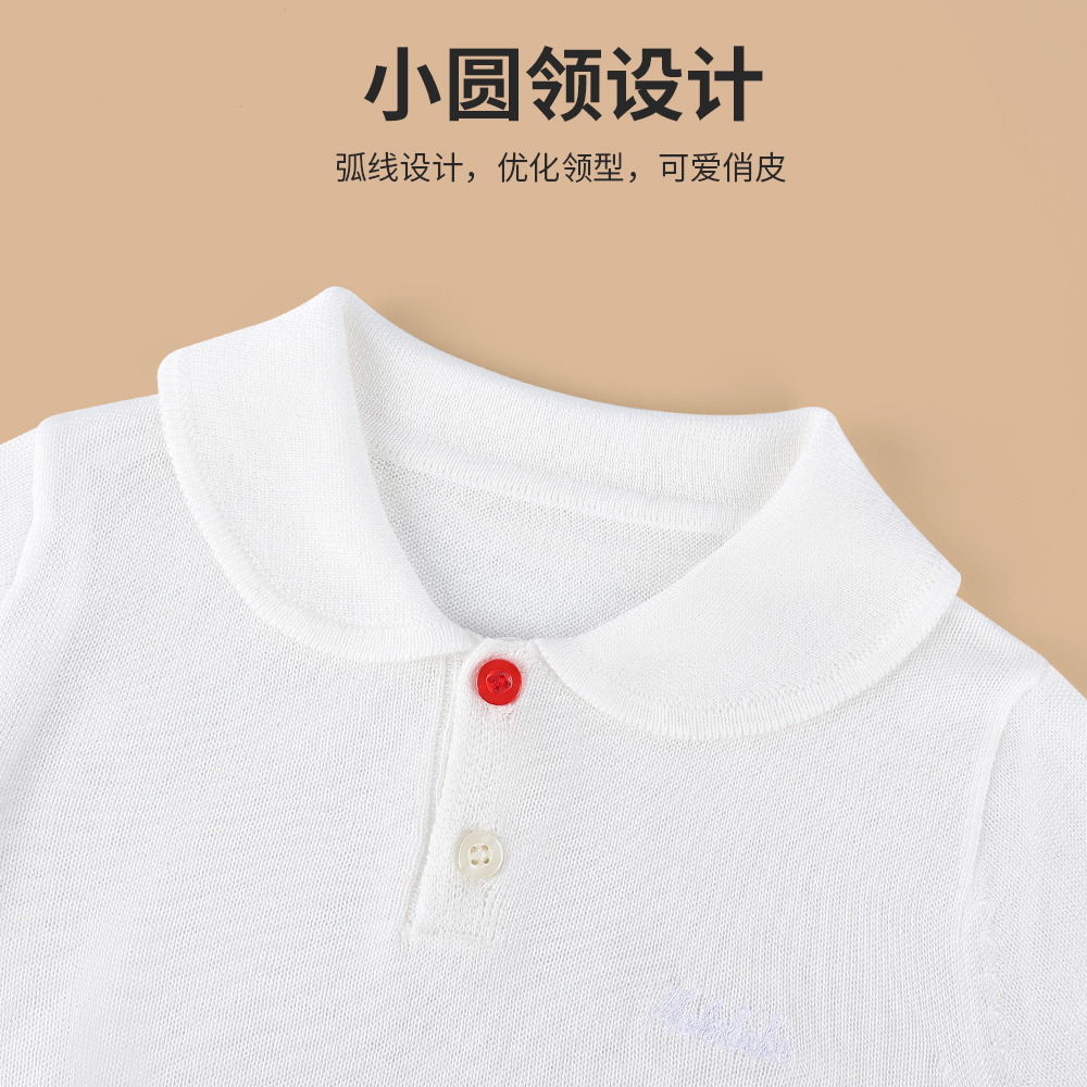2025新款 夏薄款 儿童翻领白t恤大童学院风上衣 POLO衫 女童针织短袖
