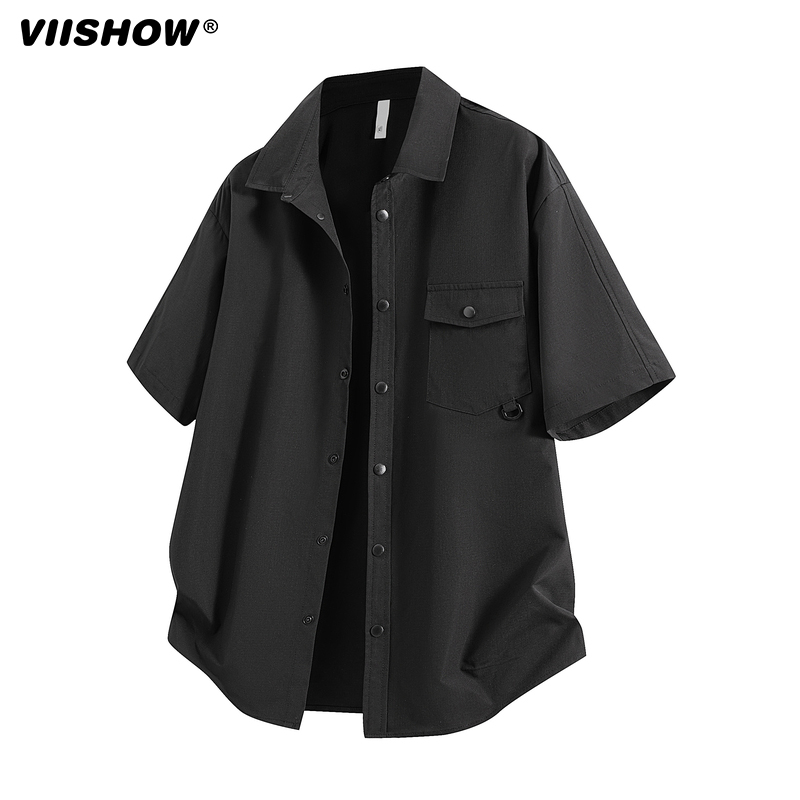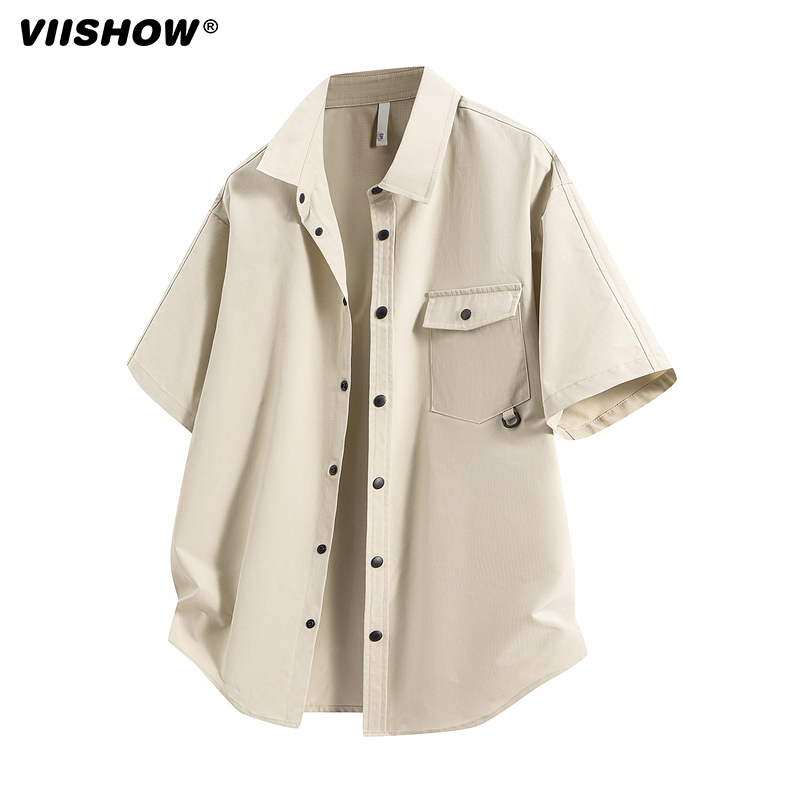 新款 短袖 纯色工装 男士 衬衣 衬衫 VIISHOW潮牌高级感宽松2025年夏季