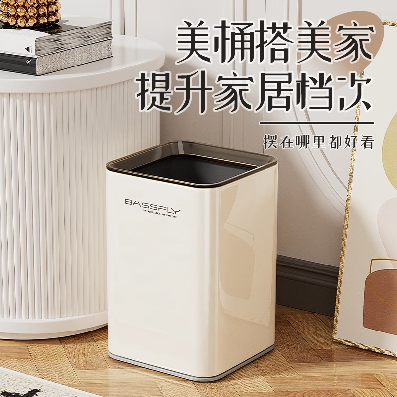 双层不锈钢无盖垃圾桶 隐藏垃圾袋滚轮直投大容量厨房办公纸篓