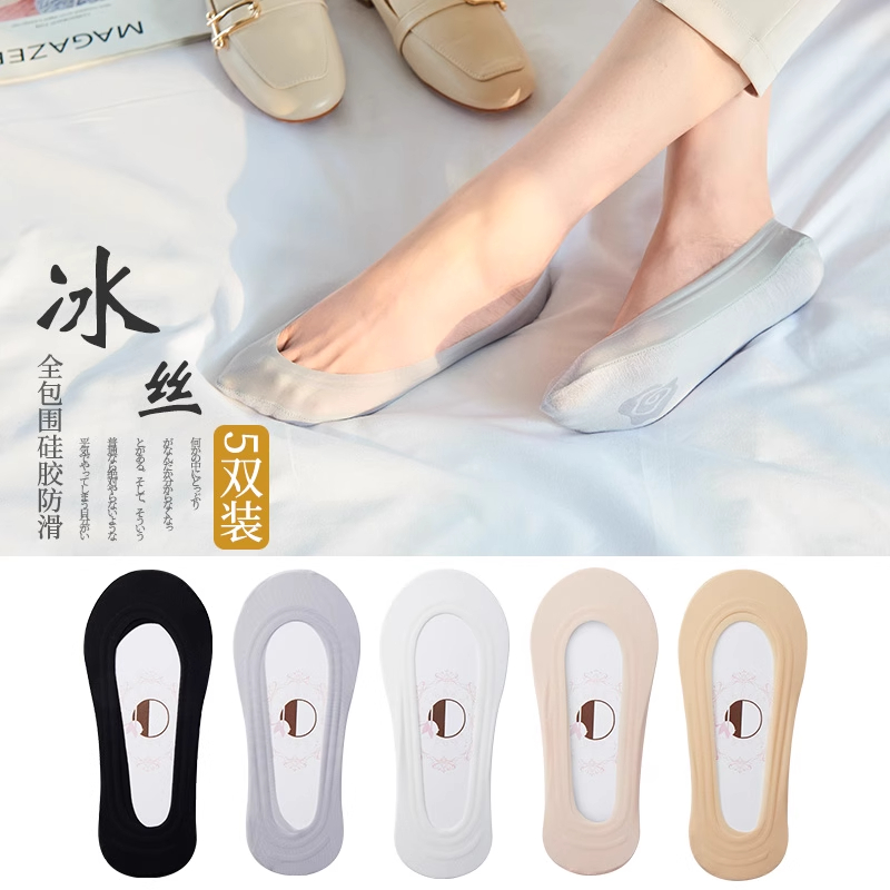 浅口隐形硅胶防滑不掉跟纯棉袜子女短袜潮 薄款 大码 冰丝船袜女夏季