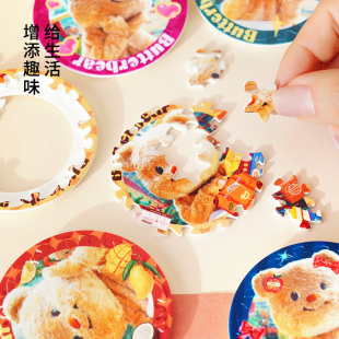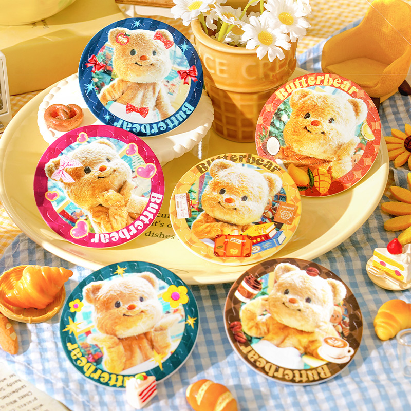 TOI图益拼图黄油小熊周边徽章盲盒解压diy玩具礼物可爱百变POSS熊