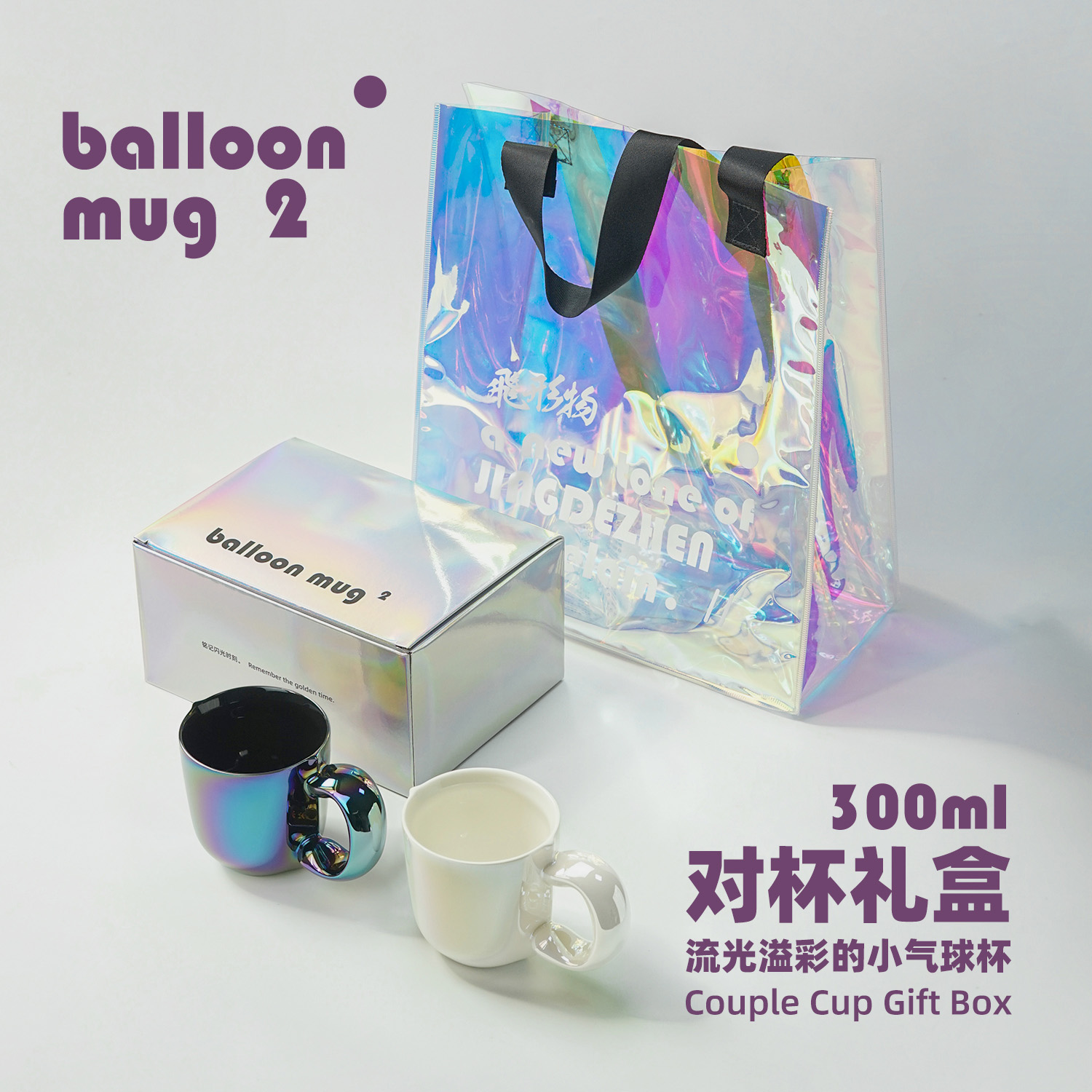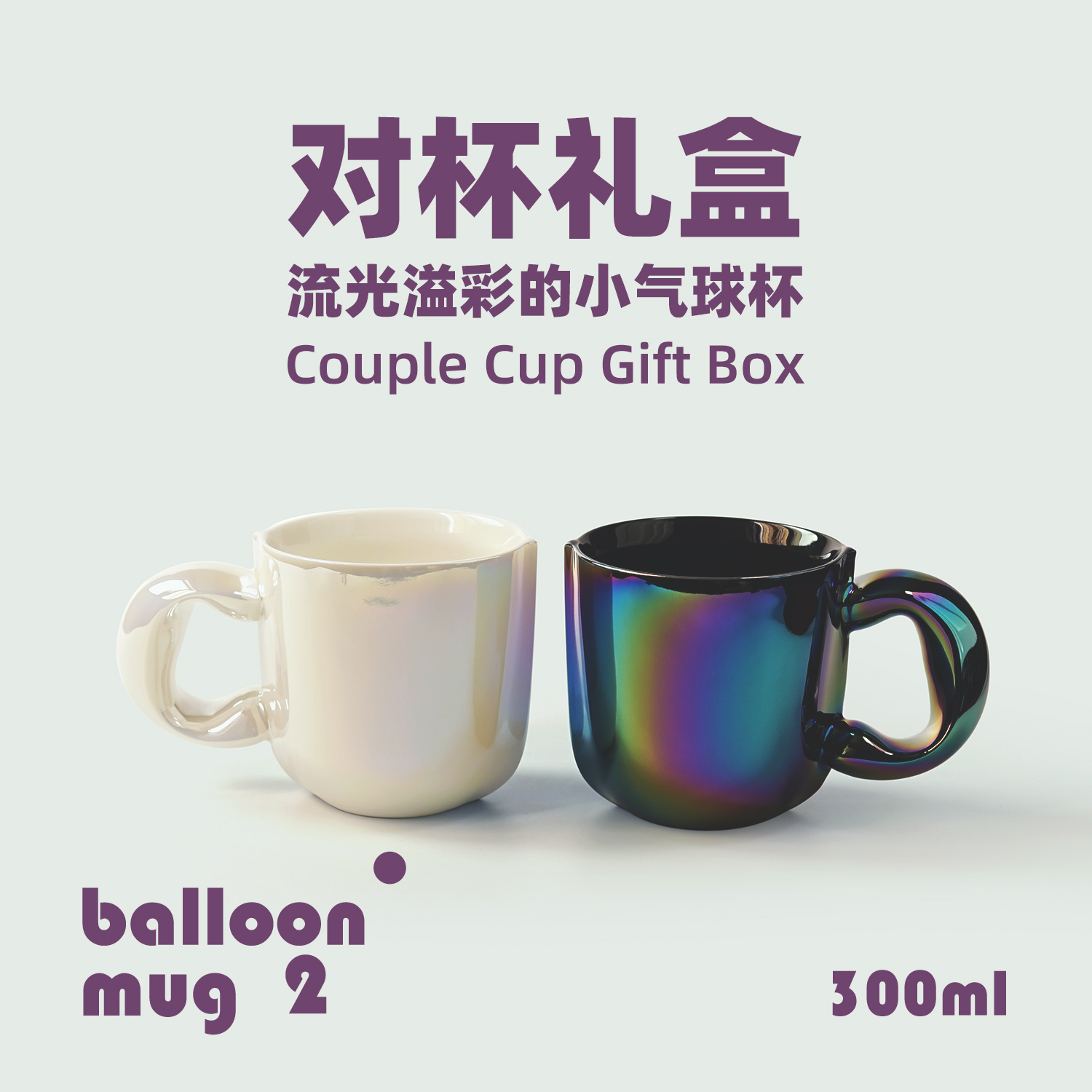 飞形物300ml小气球情侣杯子对杯一对情侣款 高级感陶瓷马克杯水杯