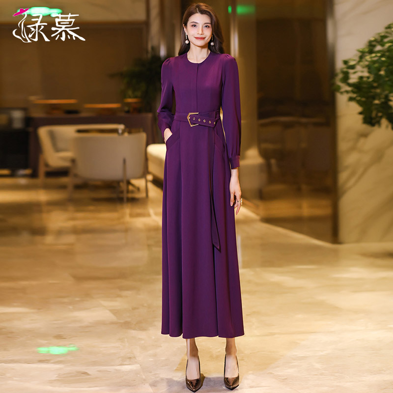 高级感紫色端庄大气连衣裙女2025春秋新款 气质显瘦遮肚子减龄长裙