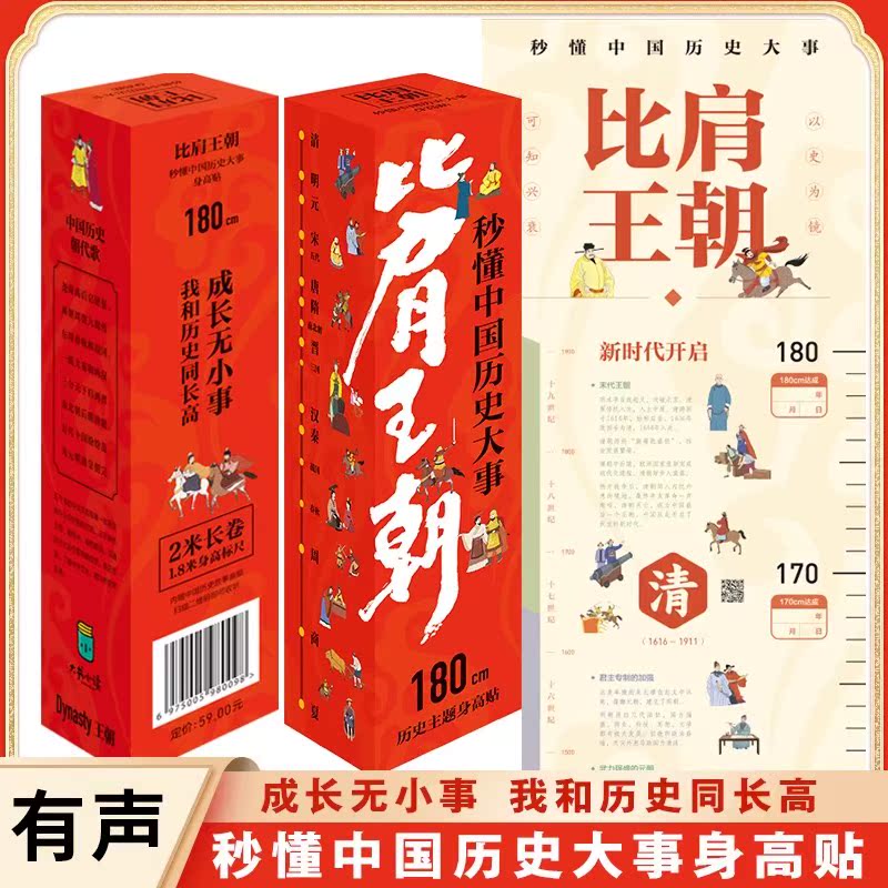 学习历史地图 附音频 夏商西周 中国历史朝代纪年 中国历史长河图概要图历史故事课外阅读比肩王朝身高贴 秒懂中国历史大事身高贴