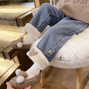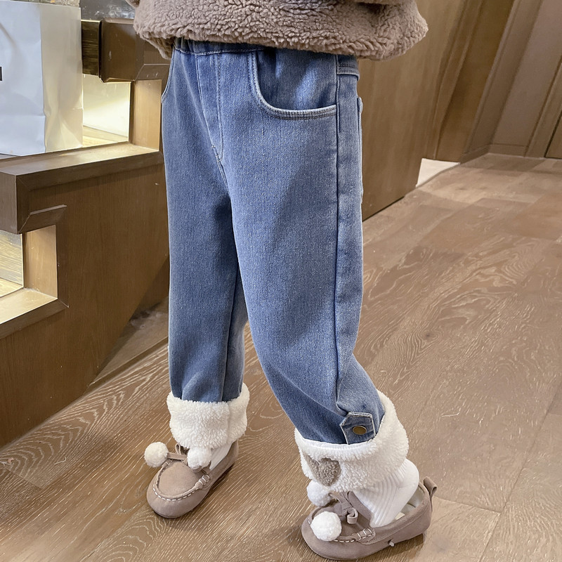 秋冬2025新款 外穿裤 小童韩版 宝宝保暖时尚 加绒长裤 女童加厚牛仔裤
