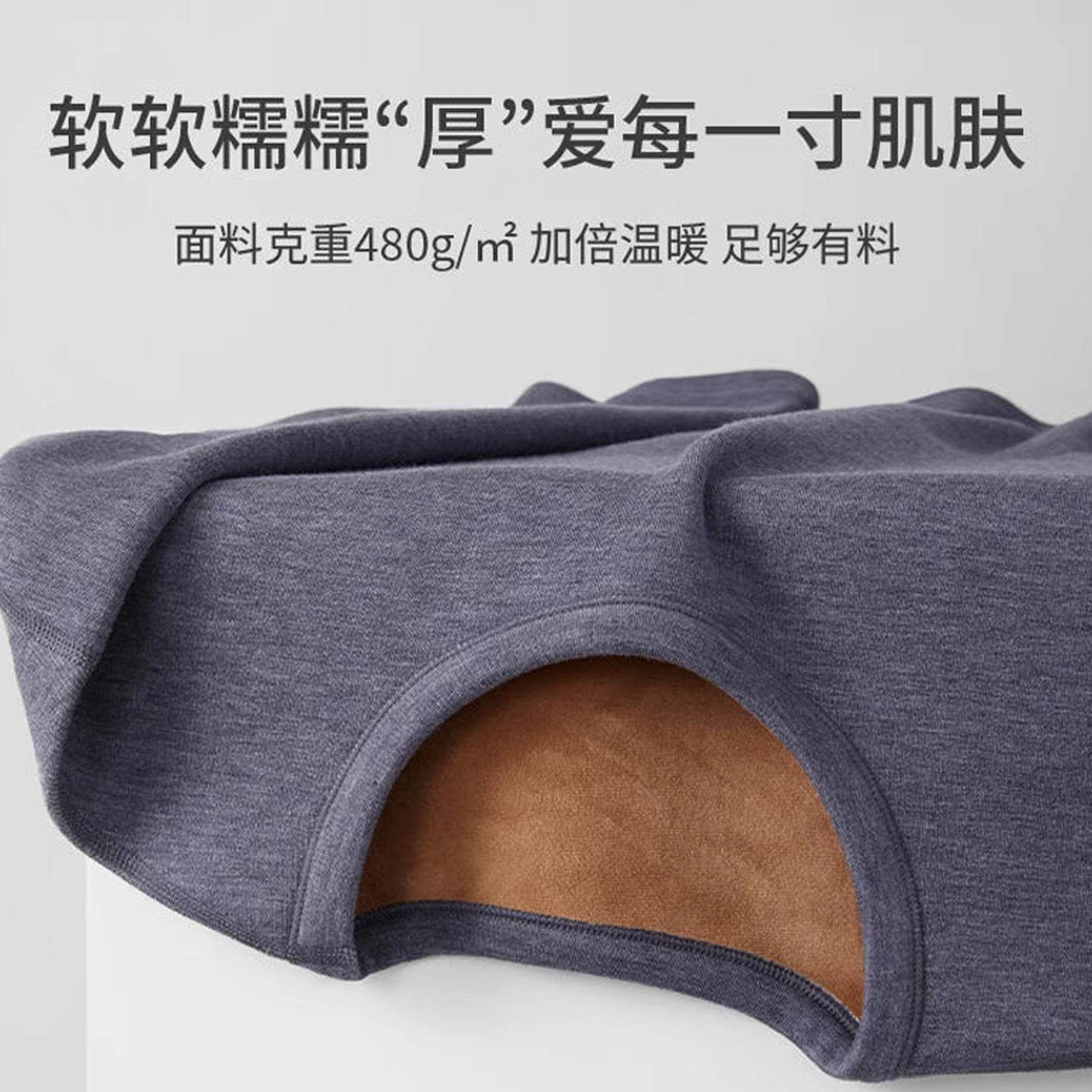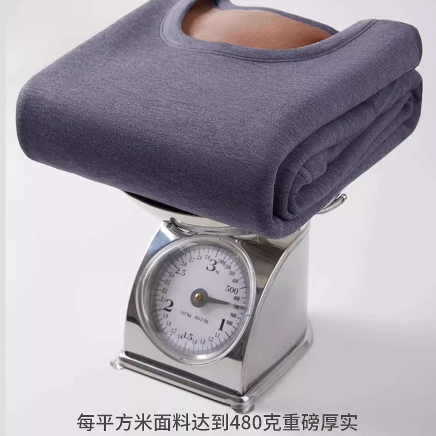 内搭秋衣单件上衣 加绒加厚圆领防寒打底衫 三枪保暖内衣男士 冬款