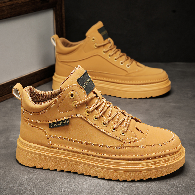 靴子 真皮防水厚底增高工装 森马马丁靴男秋季 高帮百搭休闲白色板鞋