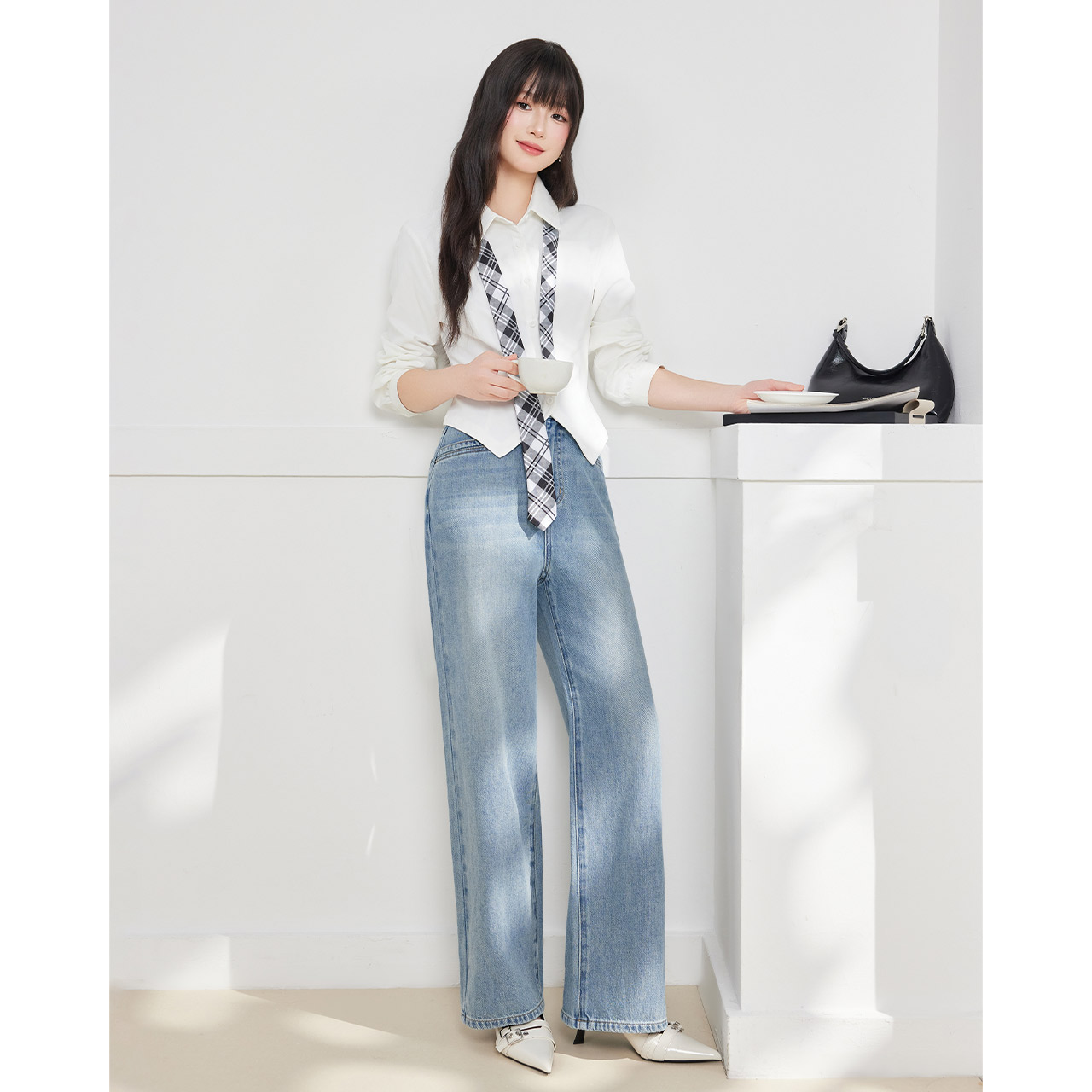 宽松垂感阔腿裤 女春秋2025新款 白色高腰直筒牛仔裤 赵露思明星同款