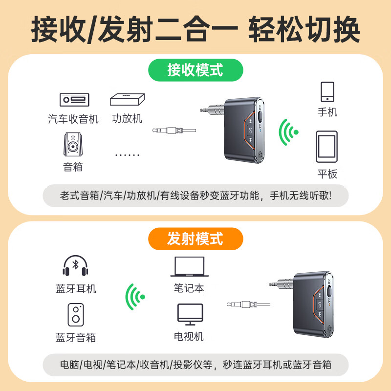BMNA蓝牙棒接收器5.4车载转AUX音频适配老音响耳机汽车用无线听歌