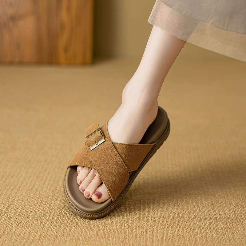 沙滩时髦露趾平底一字拖鞋 女夏外穿配裙子2025新款 凉拖鞋 白鹿同款