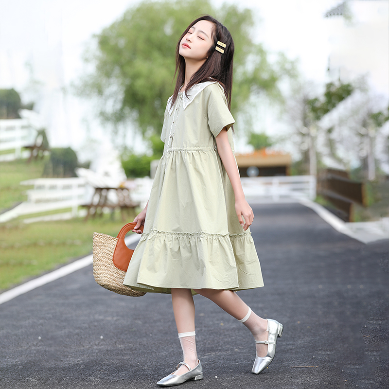 裙子中大童韩版 夏装 洋气娃娃领气质公主裙 连衣裙2025新款 女童夏季
