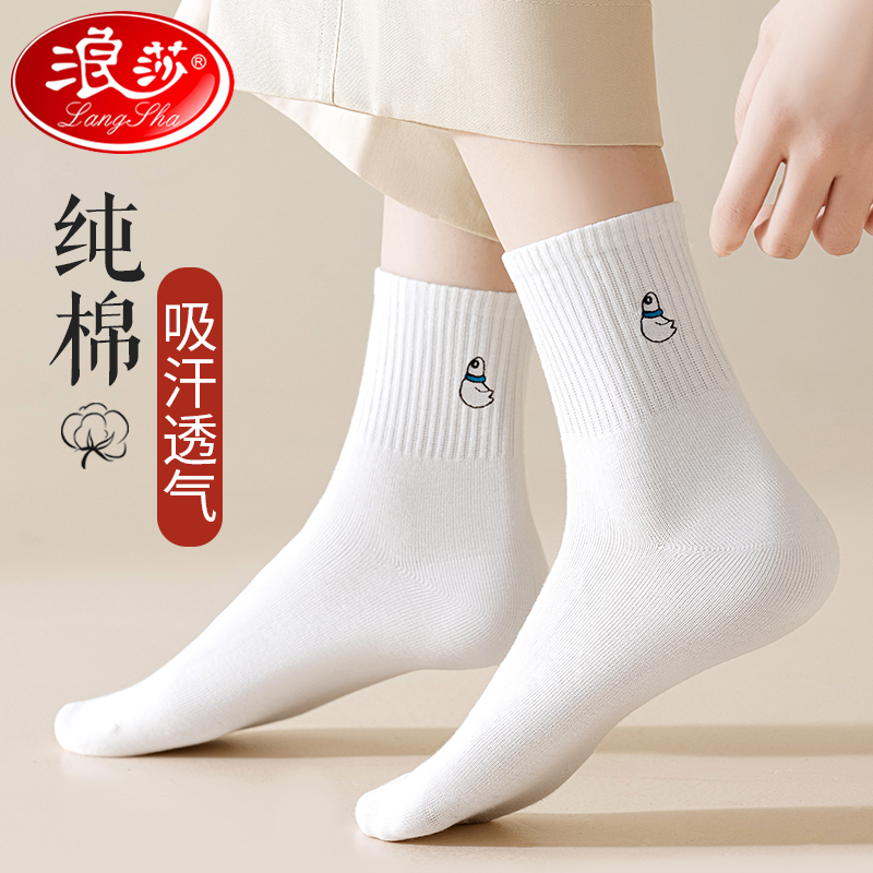 南极人袜子男款 青少年长袜PB 中筒秋冬棉袜7a抗菌防臭男袜白色男士