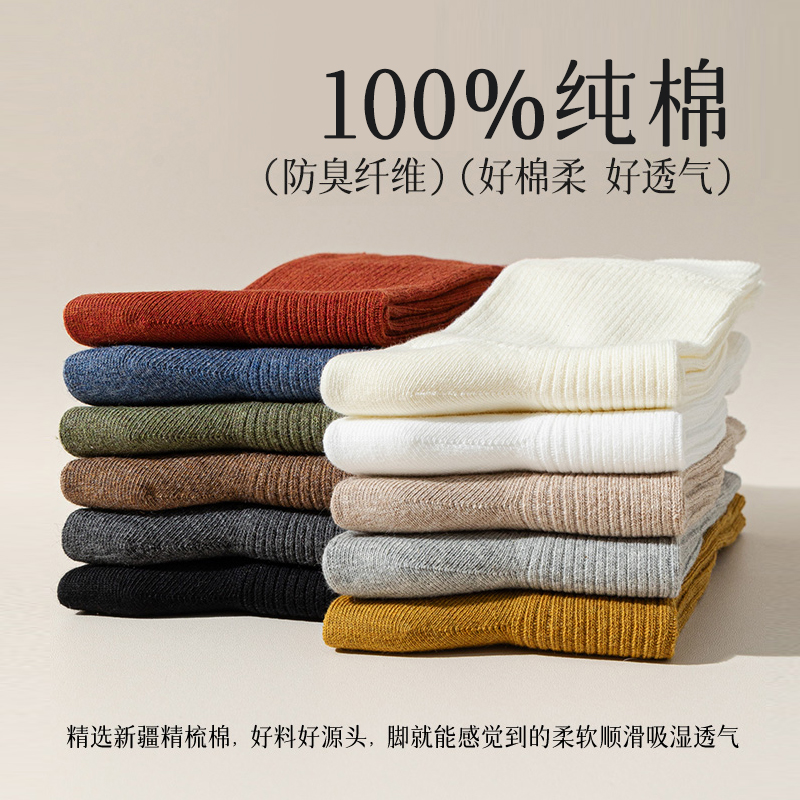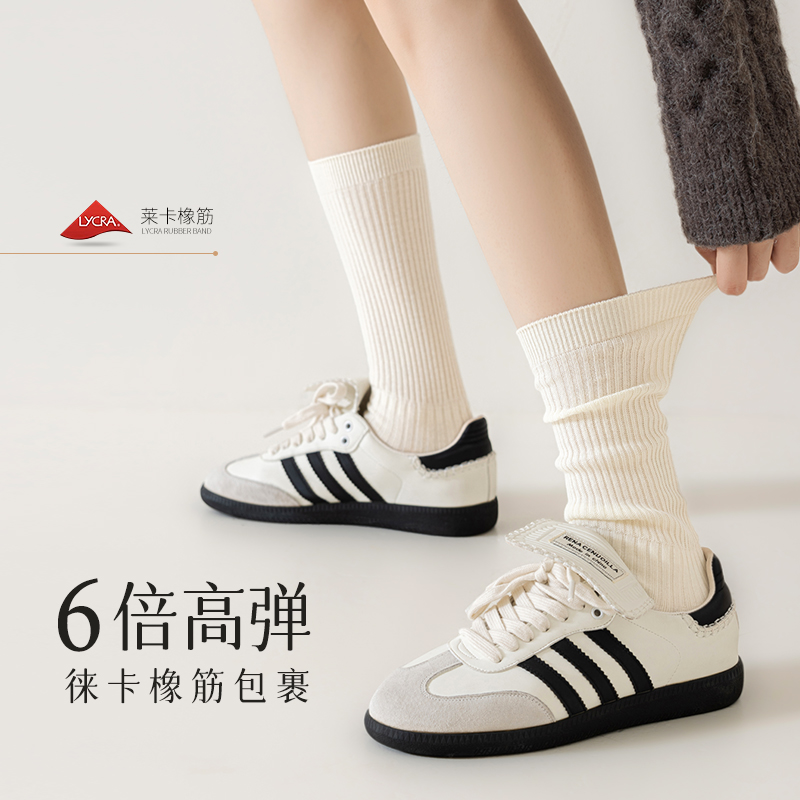 纯棉中筒袜搭配勃肯鞋 灰色堆堆袜秋冬款 爆款 美拉德袜子女2024新款