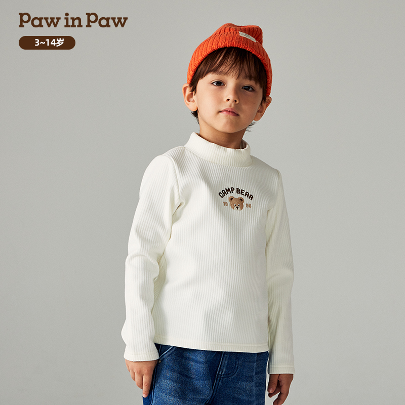 T恤 打底衫 PawinPaw卡通小熊童装 秋冬男童柔软加绒长袖