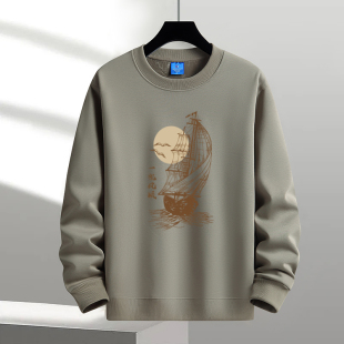 打底衫 秋冬季 卫衣纯棉宽松加绒加厚保暖上衣潮牌男装 t恤男士 长袖