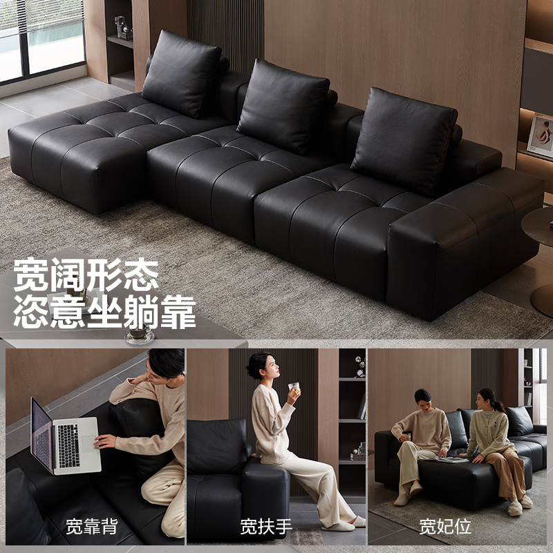 政府补贴全友家居现代极简客厅直排黑色像素劳伦斯真皮沙发