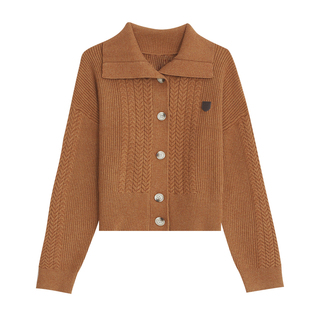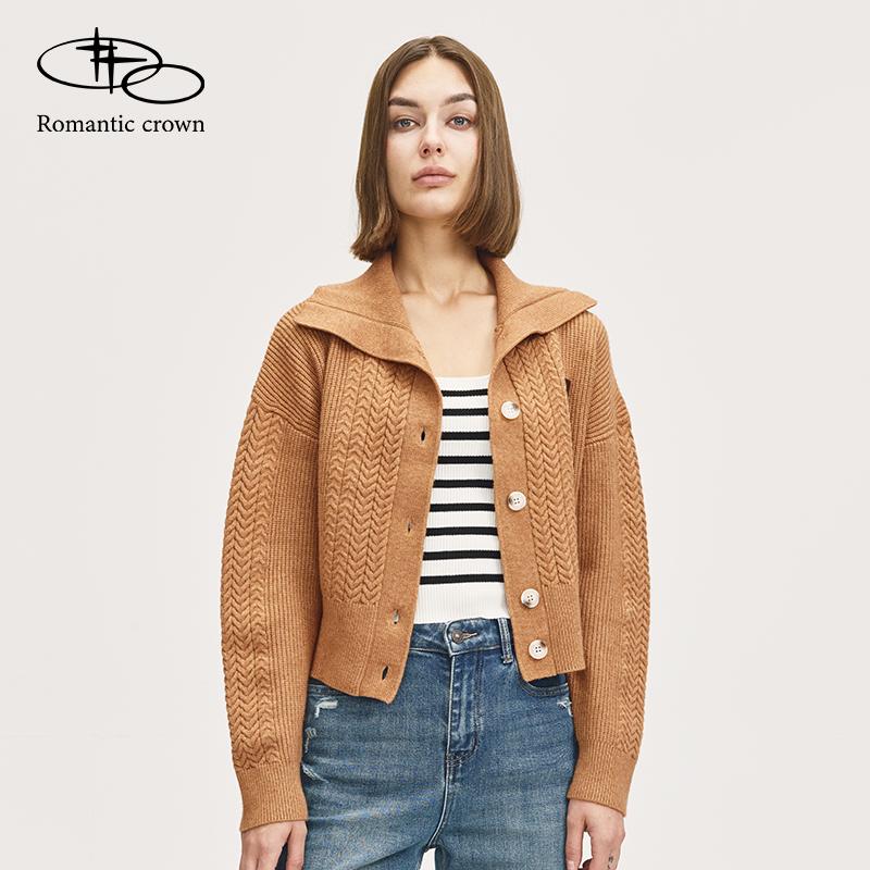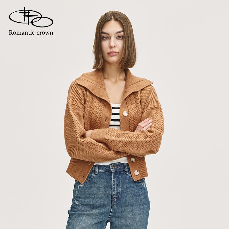 舒适百搭翻领外套 logo纯色针织开衫 RomanticCrown24秋冬新款 经典