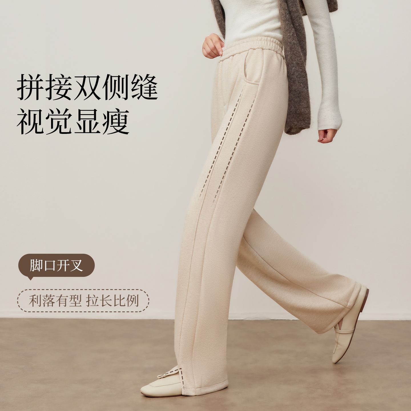 高级宽松bf慵懒垂感直筒加绒休闲阔腿裤 2025新款 子女春秋季 糯米裤