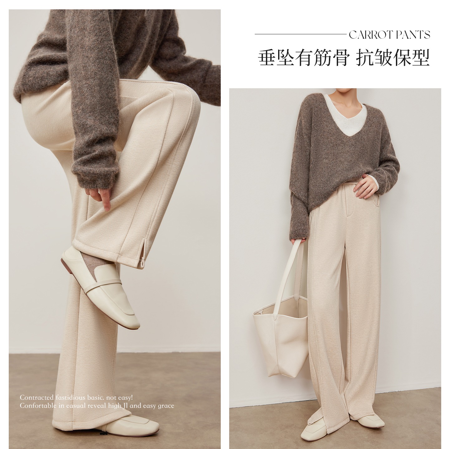 高腰垂感窄版 新款 羊毛西装 裤 卡其色阔腿裤 休闲直筒裤 女2025春秋季