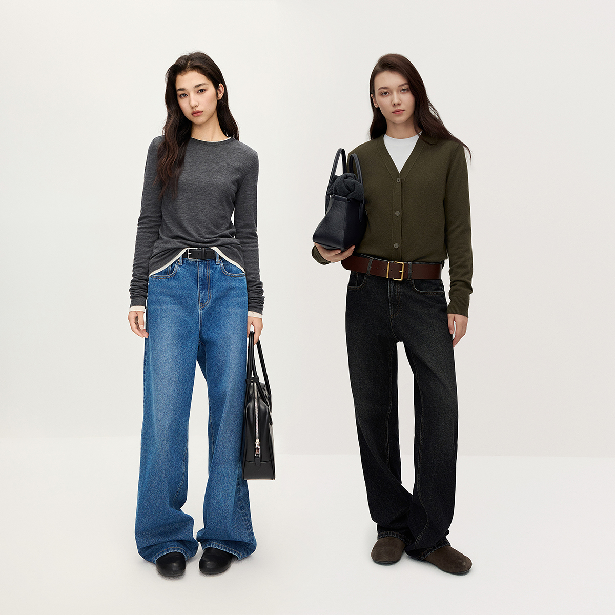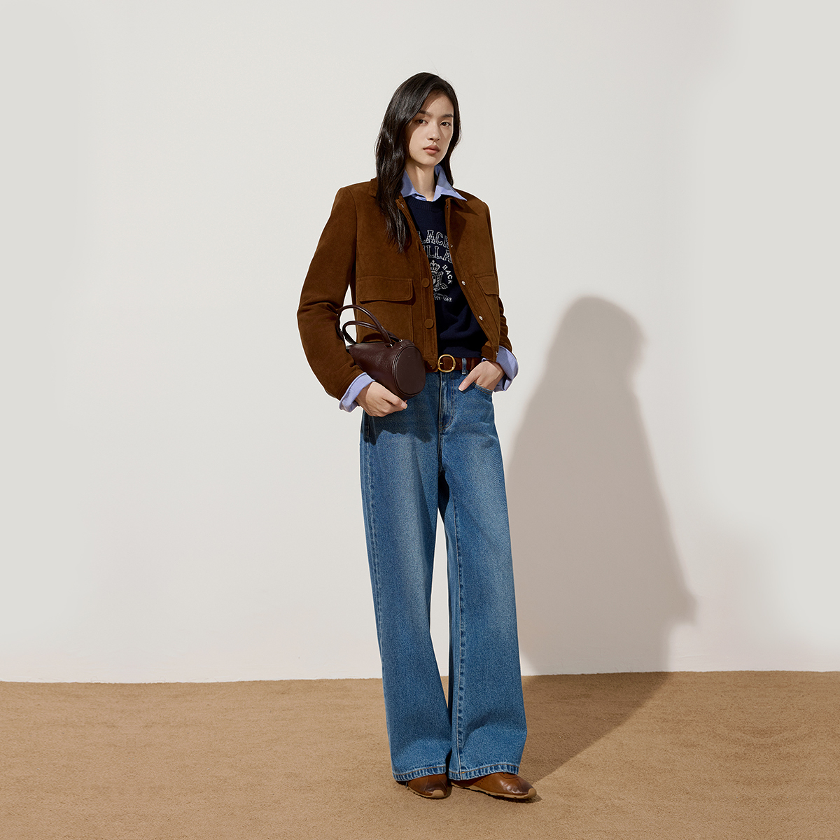 女阔腿松弛感复古洗水流行早秋新品 OCHIRLY欧时力 直筒牛仔长裤
