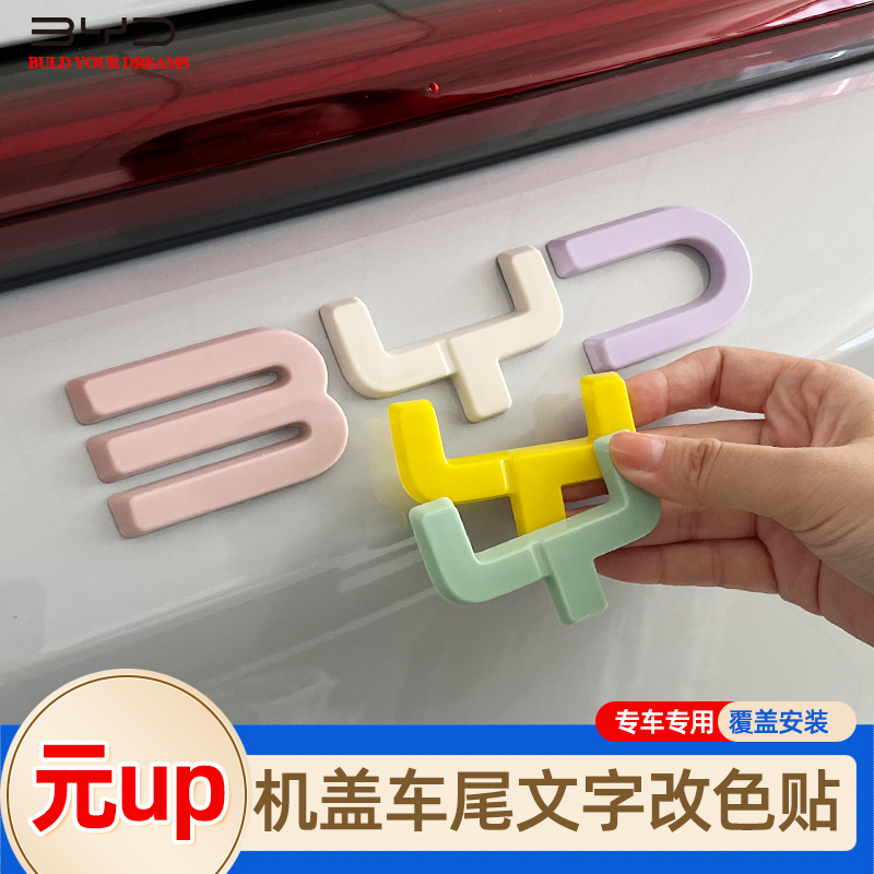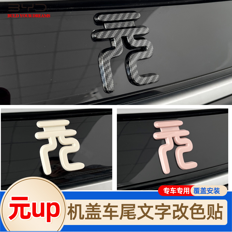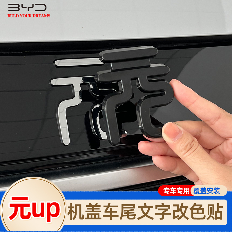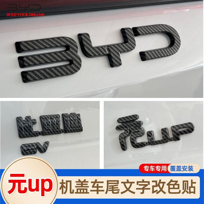 贴 up改色后字标前后字母BYD改装 专用比亚迪元 up车标贴黑化车标元