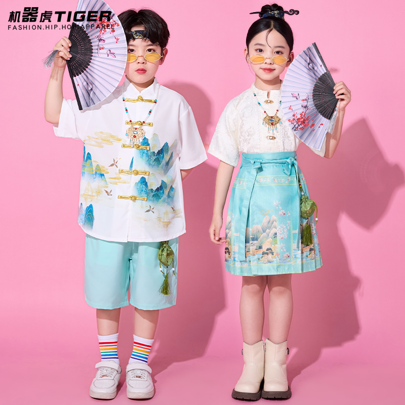 元 旦儿童大合唱演出服男女童马面裙运动会表演服诗歌朗诵国风汉服