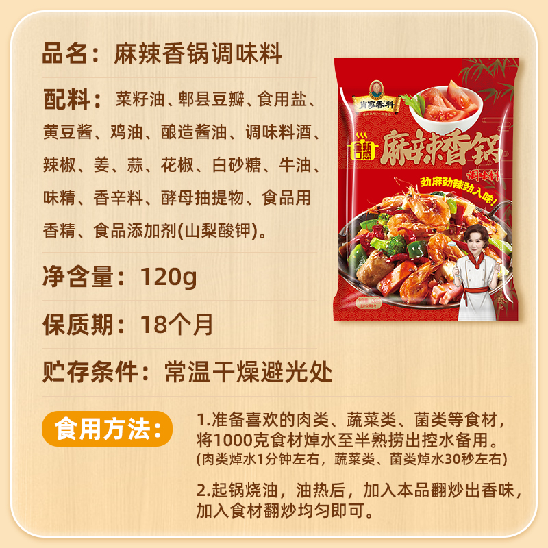 肖家香料麻辣香锅120g 袋麻辣烫干锅酱正宗麻香一袋可做两斤菜