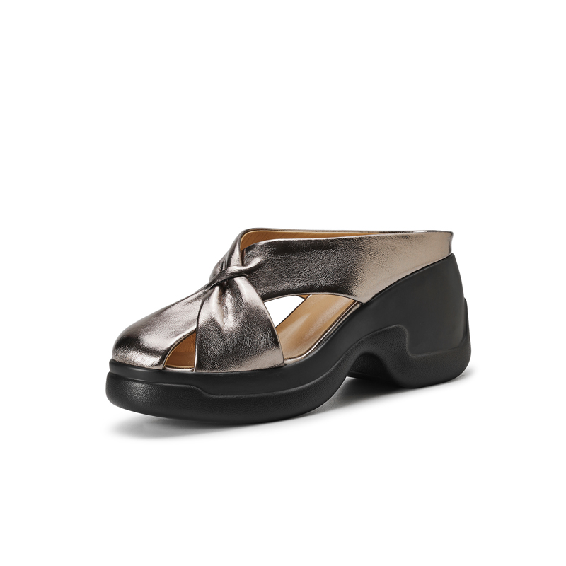 周雨彤同款 2代包头穆勒女拖E4T1DCH预 百丽厚底增高花生吐司勃肯鞋