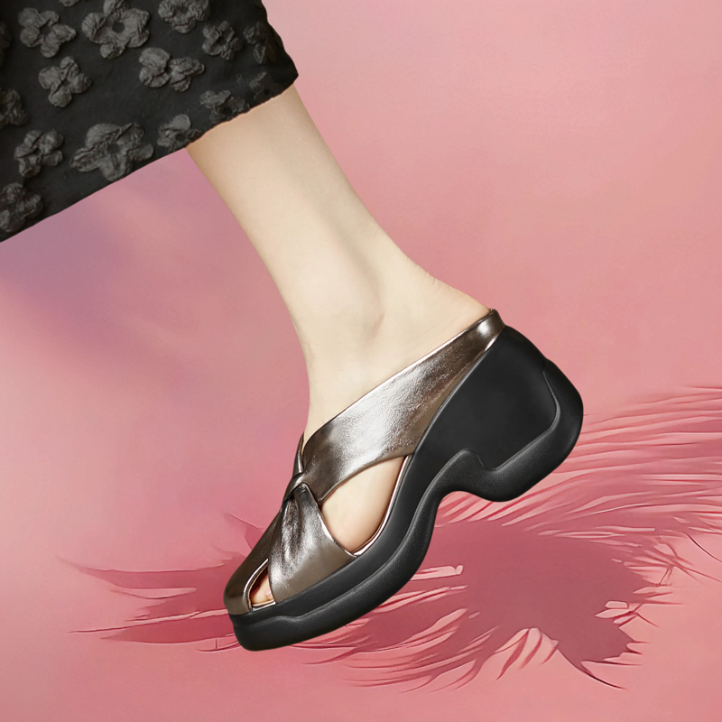 软底增高包头外穿拖鞋 夏季 防滑厚底不臭脚女 女士踩屎感新款 洞洞鞋