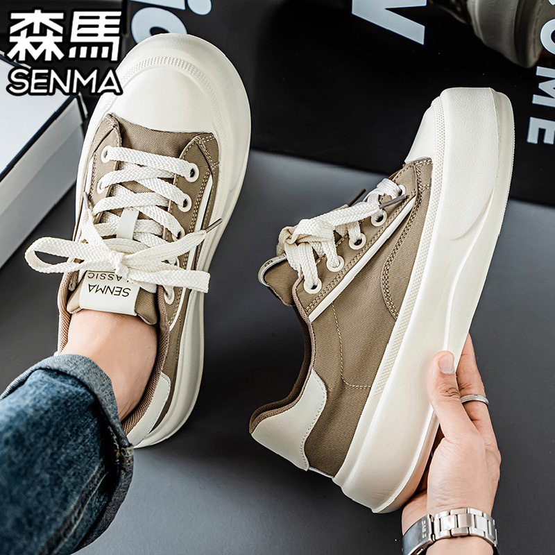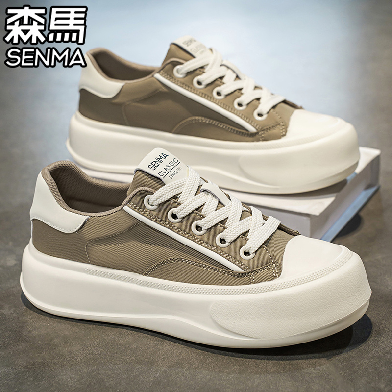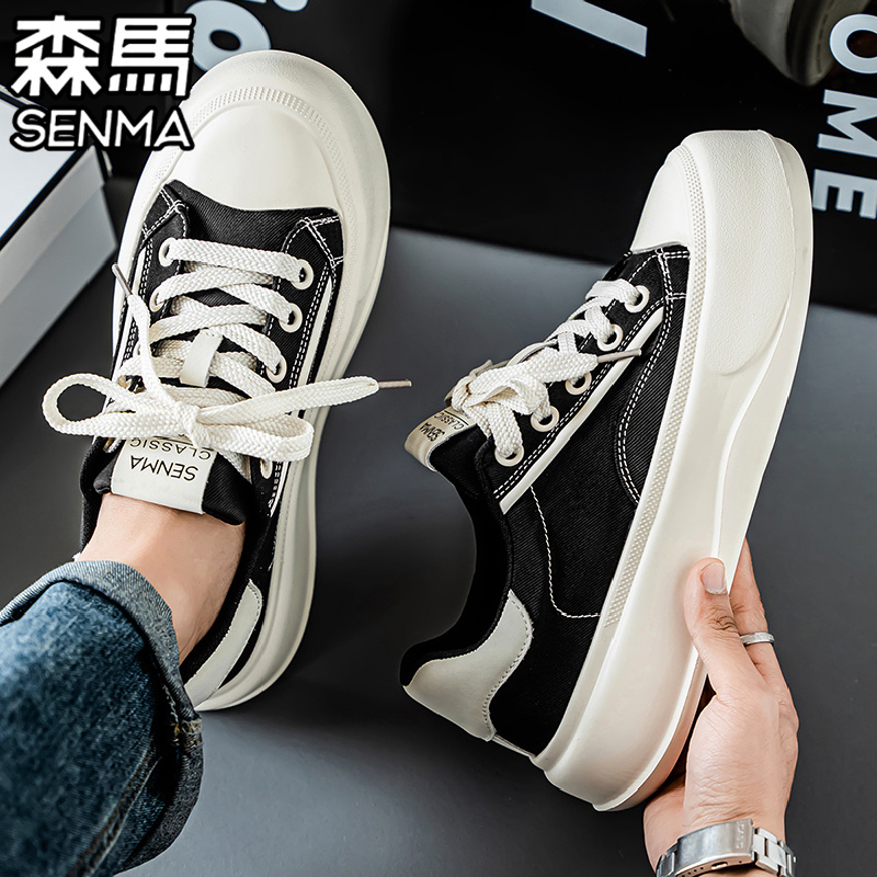 厚底增高百搭丑萌潮鞋 森马帆布男鞋 男士 透气运动休闲黑色板鞋 秋季